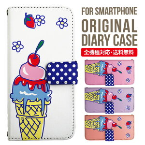 デザインスイーツ柄 / アイスクリーム機能・両面カバーで、スマートフォンの液晶も本体もしっかり両面保護・ポケットの中やバッグの中での誤操作を防止・ベルト部分はマグネット式でスムーズな開閉・装着したままカメラ機能が使えます