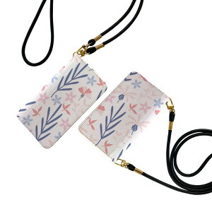 ショルダー付き手帳型スマホケース・シームレスな全面デザイン(内側は落ち着いたオフホワイト)・外側は高品質の人工革を使用・内側にはスマホを装着するケースが付属・機種専用のカメラホール仕様でケースを装着したまま