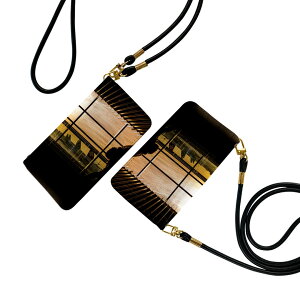 ショルダー付き手帳型スマホケース。シームレスな全面デザイン(内側は落ち着いたオフホワイト)。外側は高品質の人工革を使用。内側にはスマホを装着するケースが付属。機種専用のカメラホール仕様でケースを装着したまま。