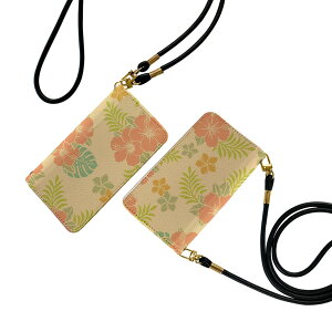 ショルダー付き手帳型スマホケース。シームレスな全面デザイン(内側は落ち着いたオフホワイト)。外側は高品質の人工革を使用。内側にはスマホを装着するケースが付属。機種専用のカメラホール仕様でケースを装着したまま。