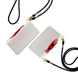商品特徴・ショルダー付き手帳型スマホケース・シームレスな全面デザイン(内側は落ち着いたオフホワイト)・外側は高品質の人工革を使用・内側にはスマホを装着するケースが付属・機種専用のカメラホール仕様でケースを装着したまま