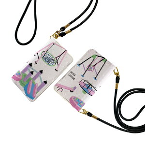 ショルダー付き手帳型スマホケース・シームレスな全面デザイン(内側は落ち着いたオフホワイト)・外側は高品質の人工革を使用・内側にはスマホを装着するケースが付属・機種専用のカメラホール仕様でケースを装着したまま