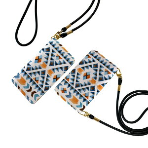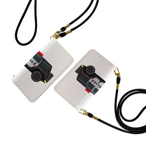 ショルダー付き手帳型スマホケース・シームレスな全面デザイン(内側は落ち着いたオフホワイト)・外側は高品質の人工革を使用・内側にはスマホを装着するケースが付属・機種専用のカメラホール仕様でケースを装着したまま