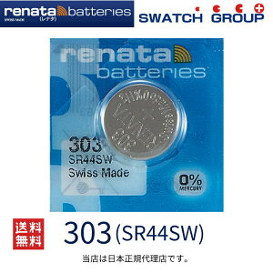 安全!本場スイス:レナタ社製!スウォッチ・グループのrenata社 レナータ ボタン電池 303/SR44SW × 1個(ばら売り)時計/LEDライト/電子機器用 ローレート タイプコイン型ボタン電池/無...