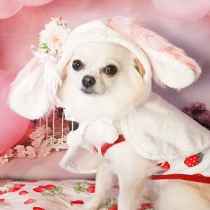 サイズ着丈:約11cm 犬種:チワワ、ヨークシャテリア(小ぶり)素材/材質ポリステル100%特徴かわいさ倍増!うさぎケープ! POINT たれみみうさぎさん ふわふわでかわいい ※ルルドールのケープはゴムにおててを通すのでズレず回らず着られ