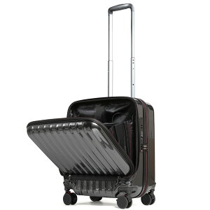 ストッパー付きでビジネスユースをより快適にする、機内持ち込み&コインロッカー SSサイズのフロントオープンキャリー ストッパー付きで旅を快適にするフロントオープンキャリー。ハードキャリーにソフトタイプの利便性をプラス...