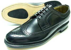 アメリカントラッドの、クラシカルなデザインのウィングチップドレスシューズ。本革底にグッドイヤーウェルト製法ののしっかりした丈夫な造りの革靴です。アッパーの革はつややかな美しい革で、レザーソールには滑り止めのラバーグリ