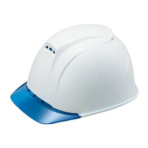 保護具 ヘルメット・軽作業帽 透明バイザーヘルメット ●二層構造による大きな通気孔と「エアライト」で抜群の通気性です。●飛来・落下物用。●墜落時保護用。●帽体色:ブルー●バイザー色:グレー●頭囲(cm):53〜63●衝撃吸収ライナー:...