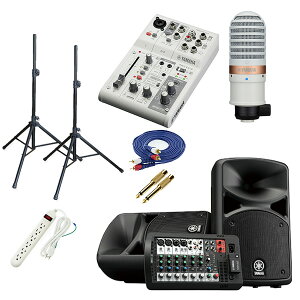 安価かつ確実に集音できる有線タイプのダイナミックマイク付セット ■セット内容 StagePAS400BT(スピーカー2本・パワードミキサー1個・スピーカーケーブル付き)/スピーカースタンド×2...