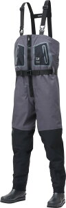 ダイワ初のフロントフルオープンファスナーを採用!!フルオープンになるので、着脱が楽。ウェーダー内のムレも一気に放出。タイトフィットモデルでありながら、立体裁断で歩行性が向上。不快なムレを低減するダイワ独自のウェーダー専用4層構造防水透...