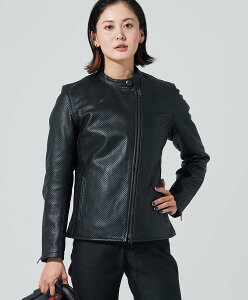 すべてのカラーをみる■デザイン夏用パンチングレザーセミダブルライダース。シンプルなデザインに斜め配置のファスナーが特徴。ダブルのスタイルとしながらも、風の流入を妨げないよう下前端は狭く設計し、襟もスタンドカラーとする