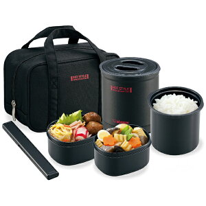 保温弁当箱 お・べ・ん・と ブラック ●ランチタイムまでごはんあったか「まほうびん保温ケース」●お手入れカンタン「洗えるポーチ」●清潔!「AG+抗菌加工容器」(ごはん容器・ごはん容器ふた・おかず容器)●「おかず容器」野菜も