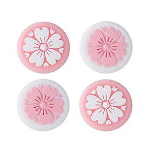 アナログスティックカバーキャップ 4個 カラー ピンク ホワイト(桜柄) 互換性 Nintendo Switch joy-con Nintendo Switch Lite 素材 シリコン かわ...