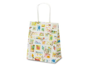 手提げ 紙袋 25枚入りがお買い得!店舗用品、業務用としてもお使いいただけるお得な25枚セットです。サイズは幅200×マチ120×丈250mmです。 カラフルなモチーフがプリントされているロングセラー商品です。 取っ手は丈夫な紙丸紐と...