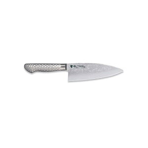 サイズ:刃渡り150mm 本体重量:約90g 素材・材質:刃部・モリブデン・バナジウム鋼/ステンレススチール ハンドル部/18-8ステンレス 原産国:日本/燕市 63層ダマスカス鋼
