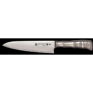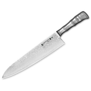 サイズ:刃渡り270mm 本体重量:約310g 素材・材質:刃部・モリブデン・バナジウム鋼/ステンレススチール ハンドル部/18-8ステンレス 原産国:日本/燕市 63層ダマスカス鋼