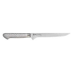 特徴砥石による本格的な刃付けを施し、鋭い切れ味を長く持続させます。ダマスカス鋼は、インド産のウーツ鋼を使用し、シリアのダマスカスで刀剣などに鍛造されたことから、 この名がついた。最大の特徴は、坩堝の中で溶けた鋳鋼が凝固