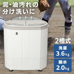 【分け洗いや予洗いをこの1台で】。 【洗濯と脱水」が出来るコンパクトな2槽式洗濯機】。 【標準洗濯 洗濯(約)3.6kg/脱水(約)2.0kg】。 【操作しやすいダイヤル式、丈夫で衛生的なステンレス槽、便利な糸くずフィルター付き】。