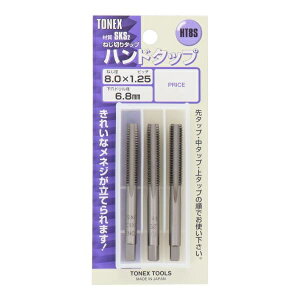 TONEX ハンドタップセット きれいなメネジが立てられます。 一般鋼・真鍮・銅・アルミ材 サイズ:2.3x0.4mm 材質:SKS2 ブランド:H&H メーカー:株式会社三共コーポレーション