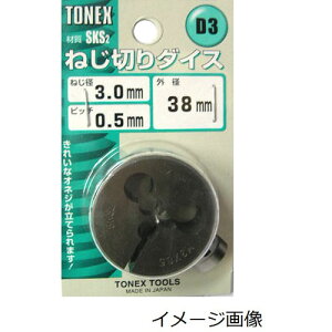 サイズ等は商品説明欄をご確認ください。 商品名:ダイス(38mm) メーカー品番:M3X0.5 ブランド:TONEX(トネックス) 弊社品番:20476878 JANコード:4954458102136 特長:きれいなオネ...