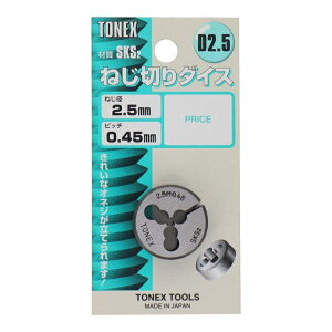 【メーカー名】 ●TONEX 【特長】 ●きれいなオネジが立てられる。一般鋼・合金鋼・非鉄金属◇注意:画像はサイズ違いのものになります 【仕様】 ●サイズ(mm)/D2.3×0.4 ●材質/SKS2