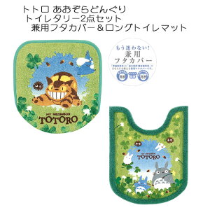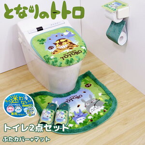 となりのトトロから可愛いトイレ2点セット登場です。 森を吹き抜ける風に、葉っぱが舞い上がる 映画のワンシーンを思わせる情景をトトロが見つめています。 森をイメージして明るさを抑えたグリーン色が 落ち着いたトイレ空間を演出し