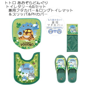 となりのトトロから可愛いトイレ4点セット登場です。 森を吹き抜ける風に、葉っぱが舞い上がる 映画のワンシーンを思わせる情景をトトロが見つめています。 森をイメージして明るさを抑えたグリーン色が 落ち着いたトイレ空間を演出し
