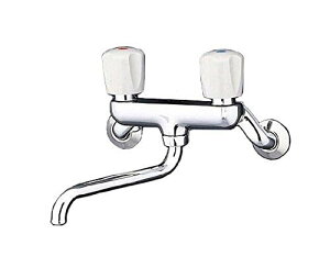壁付き2ハンドル混合栓スパウト(吐水パイプ)長さ17cm取り付け幅9〜21.5cm対応水流整流