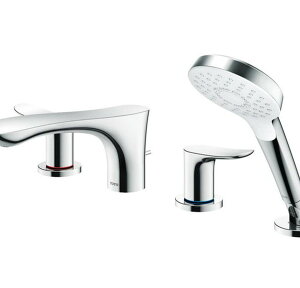 台付2ハンドル混合水栓ワンプッシュありスパウト長さ:143吐水口高さ:196取付穴:Φ35台付2ハンドル混合水栓(埋込、泡まつ、ワンプッシュ、共用)
