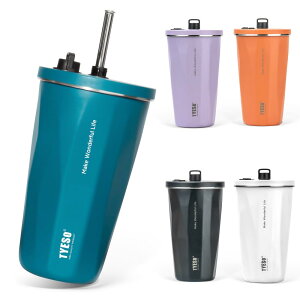 商品名TYESO タンブラー ストロー付き サイズ 約高さ18.6cm×幅10.1cm 重量 約372g 容量 600ml 本体素材 内外304ステンレス鋼(SUS304) カバー PPプラスチック+...