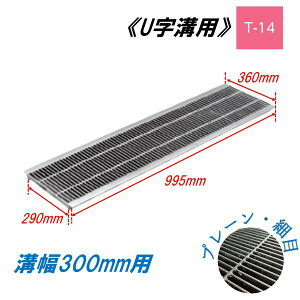 ◆材質:スチール製。◆仕上げ:溶融亜鉛めっき仕上げ。◆本体寸法:内幅230×外幅300×長さ995×主部材高さ32mm。◆ピッチ:33mm(スキマ28mm)。◆適用荷重(側溝):T-6〜T-14兼用。