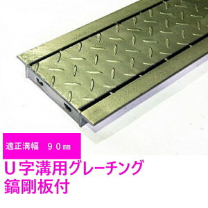 縞鋼板付U字溝用グレーチング(溝ぶた)L-950 HUK-90 溝用みぞ蓋 適正みぞ幅90mm 長さ995mm/幅80mm アングル外付けC134mm アングル(厚み×幅)L3mm×30mm 乗用車用(T-2)...