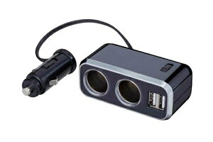 車内のシガーソケット(アクセサリーソケット)を2つにできる2連ソケット。スマホやタブレットを2台同時に充電できるUSBポート付き。12V/24V車対応。