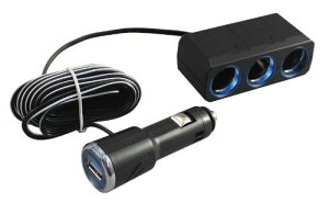 車内のシガーソケット(アクセサリーソケット)を2つにできる2連ソケット。スマホやタブレットを2台同時に充電できるUSBポート付き。12V/24V車対応。