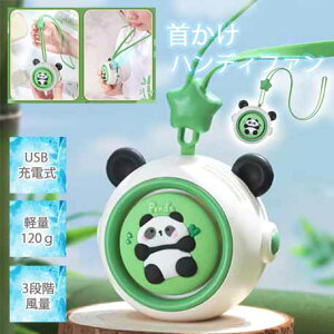 パンダデザインがキュートな首かけハンディファン。 ・気分が上がるかわいいパンダデザインで夏が楽しく過ごせそうなアイテムです♪ ・ボタン一つで電源・風量調節(3段階)が可能。 ・USB充電式です。 ・軽量