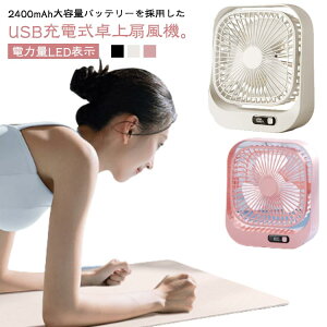 2400mAh大容量バッテリーを採用したUSB充電式卓上扇風機。【電力量LED表示】【風量3段階】USB充電式扇風機なので、車内などの屋外でも使える。PCに繋いで充電しながらの使用が可能。高性能2400hAm大容量バッテリーを採用。最...