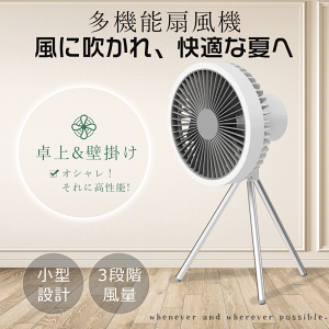 商品名 多機能アウトドア扇風機 消費電力 4W バッテリー容量 10000mAh 充電時間 約 4.5時間(※使用状況により異なります。) 入力電圧 DC5.0V/2.0A 連続使用時間 1段階約27時間 2段階約13時間 3段階約8...
