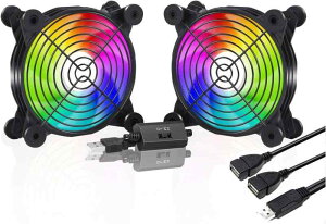 PANO-MOUNTS USB ファン 12cm 静音 冷却クーラー 小型 USB 扇風機 2連 PC 冷却ファン 長寿命モータ採用 5V ダブル 送風機 薄型 120mm 1100RPM*2 水槽/...