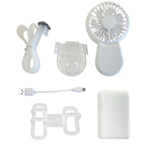■商品内容●首掛け+手持ち+クリップ固定+卓上の4WAYで使える扇風機です。●USB充電式でバッテリー搭載なので電源フリーで使えます。●風量は3段階で調節でき、静音から強風まで、利用シーンに応じて調節できます。●重量約86gと軽く、持
