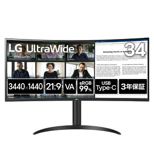 LGエレクトロニクス 34WR50QK-B 34型UWQHDウルトラワイド曲面モニター 100Hz sRGB 99% HDR ノンチグレア ブラック発売日:2025年2月20日●21:9の横長画面があ...