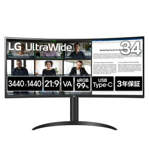 LGエレクトロニクス 34WR50QK-B 34型UWQHDウルトラワイド曲面モニター 100Hz sRGB 99% HDR ノンチグレア ブラック 112