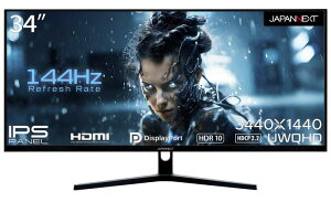 JAPANNEXT 34インチ ゲーミングモニター 144Hz 8ms UWQHD 3440x1440解像度 IPS パネル ディスプレイ (HDMI/DisplayPort/VESA対応/ブルーライトカット...