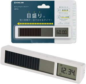 アップができます。 品名・品番:キングジム ビジュアルバータイマー VBT10 ●品番:VBT10-W (白) ●表示方法:液晶デジタル ●タイマー桁数:4桁 ●目盛り個数:20個 ...