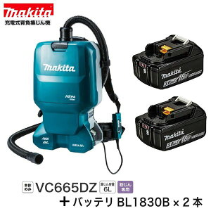 マキタ 18V+18V充電式背負集じん機 【本体+6.0Ahバッテリーセット】 商品構成: VC665DZ×1台 BL1860B×2ケ 注: 商品性能や標準付属品は、商品画像の中の 《主要機能表・付属品一覧表》を併せ...