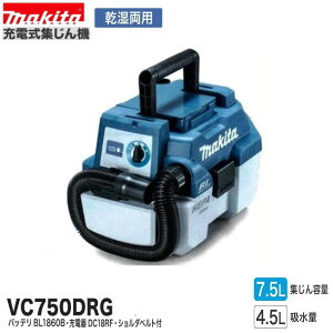 マキタ 18V 携帯型充電式集じん機 商品名: VC750DRG 《商品構成》 ・本体 ・バッテリ BL1860B(容量 6.0Ah) ・充電器 DC18RF ・伸縮ホース (0.4 〜 2.0 m) ・ワイドノズル ・サッシノズル ...