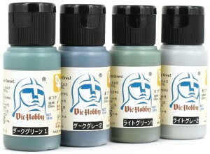■商品説明1セット4色(ライトグリーン2、タン、ライトグレー3、ダークグリーン2)の新色セットです。[VICカラー特徴]無臭 〇塗料、プライマーともに臭いがありません。 筆塗 〇筆ムラになりにくい塗料です(塗料のセルフレベリング性質の為)