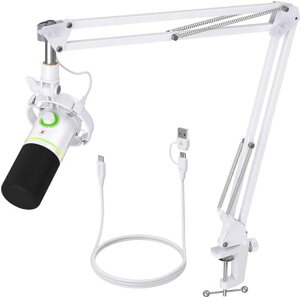 カラー:ホワイト◆商品名:FIFINE XLR/USB ゲーミングマイクセット ストリーミング ポッドキャスト用 ダイナミックマイク PCマイク ブームアームスタンド付き RGB機能付き ミュートボタン ヘッドフォンジャック...