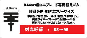 ユニブレード専用替えゴム!★本体が樹脂カバーに覆われている新形状ワイパーブレード用です。撥水コーティングガラスでも、ビビらず、静粛性に優れた拭きを実現する交換ゴム。安全な視界を確保するために、ワイパーブレードのゴムは6