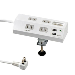メーカー:ELPA 品番:WLS-DS4232SUA(W) 壁際にピッタリ設置可能なUSBポート付AC4個口タップ。取外し可能なクランプ付。