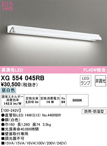 【特長】●肌もくらしも色鮮やかに。日常を彩る高演色LEDです。【仕様】●メーカー:オーデリック●型番:XG554045RB●商品名:●防雨・防湿型●壁面取付専用●R15 クラス2●高演色LED●1灯用●FL40W相当●LEDランプ型●...